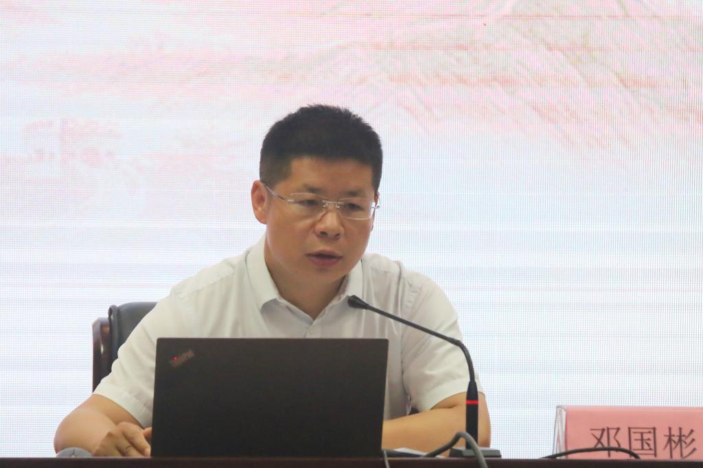 邓国彬以“学党史 悟思想 办实事 开新局”为题,从“充分认识开展党史学习教育的重大意义”“全面了解中国共产党百年奋斗的光辉历程和历史性贡献”“深刻把握开展党史学习教育的重点”“学懂弄通做实习近平新时代中国特色社会主义思想”等四个方面对开展好党史学习教育进行了深刻阐述和解读。他指出,新时代背景下,开展党史学习教育意义重大,是牢记初心使命、推进中华民族伟大复兴历史伟业的必然要求,是坚定信仰信念、在新时代坚持和发展中国特色社会主义的必然要求,是推进党的自我革命、永葆党的生机活力的必然要求。他强调,要深刻感悟中国共产党始终不渝为人民的初心使命,进一步增强扎实推进党史学习教育的政治自觉、思想自觉和行动自觉,强化认识、压实责任、办好实事,推动党史学习教育走深、走实。