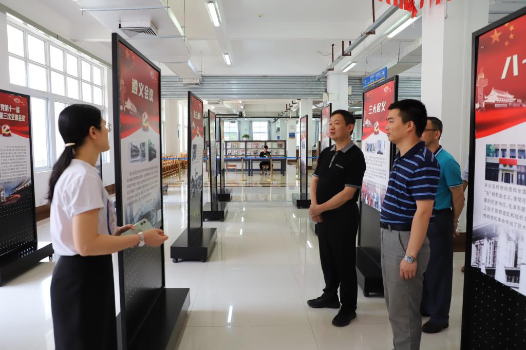 齐俊斌通过听取汇报、实地查看、资料查阅、座谈交流等方式对分校党史学习教育工作进行了全面检查。检查过程中,齐俊斌到分校党史学习教育办公室查阅党史学习教育工作档案资料,详细询问了分校在“我为群众办实事”、特色亮点活动及对外宣传等方面工作情况。随后,齐俊斌在分校图书馆实地查看了党史学习教育图片展和书展。