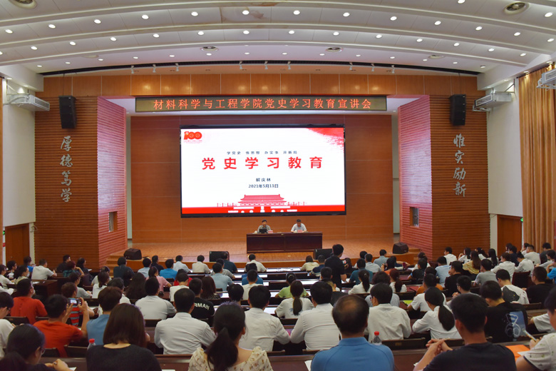 为更深入贯彻落实党史学习教育精神内涵,引导师生学史明理、学史增信、学史崇德、学史力行,5月11日下午,学校校长解庆林在屏风校区图书馆报告厅以“学党史悟思想办实事开新局——以优异成绩迎接建党100周年”为题为材料科学与工程学院、发展规划与教学质量监控中心(学科建设办公室)师生讲授了一堂深入浅出、内涵丰富、生动形象的党史学习教育专题党课。