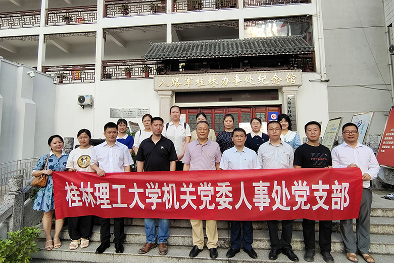 为深入推进党史学习教育,5月11日下午,机关党委人事处党支部赴八路军桂林办事处纪念馆开展“打卡红色教育基地”活动。学校党委常委、副校长王敦球以普通党员身份参加活动并现场为支部党员讲授微党课。