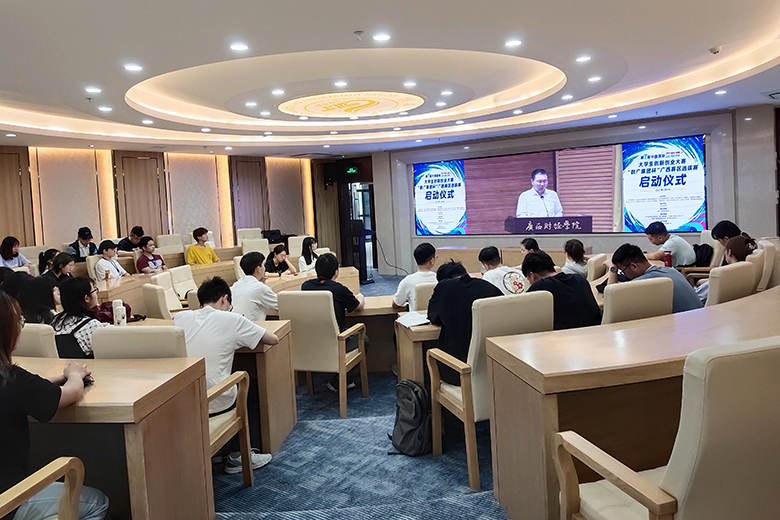 5月8日上午,第七届中国国际“互联网+”大学生创新创业大赛广西赛区选拔赛启动仪式在广西财经学院顺利召开。beat365分别在屏风校区大学生创新创业基地301会议室、雁山校区教15栋15102会议室和南宁分校设立分会场观看启动仪式线上直播。学校副校长梁福沛,创新创业学院、校团委、教务处、学生工作处、研究生院、国际教育学院等部门负责人,各二级学院分管领导、团委书记以及参赛项目团队师生代表集中观看了启动仪式线上直播。