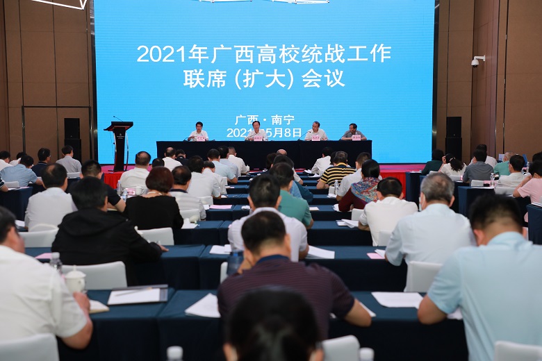 5月8日,2021年广西高校统战工作联席(扩大)会议在南宁召开。自治区党委常委、统战部部长徐绍川,自治区党委教育工委专职副书记、教育厅党组成员李晓勇出席会议并讲话,会议由自治区党委统战部副部长冯华清主持。自治区党委统战部、教育工委相关业务处室负责人以及全区各高校党委书记和统战部部长参加会议。