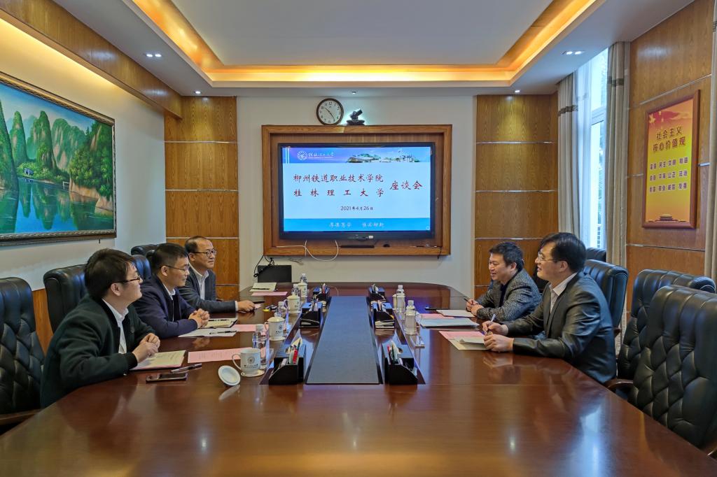 4月26日上午,柳州铁道职业技术学院杨龙平副校长一行2人来访beat365。学校校长助理、人事处处长辛立章在屏风校区第二会议室热情接待了来访客人。beat365招生就业处相关负责人参加座谈会。