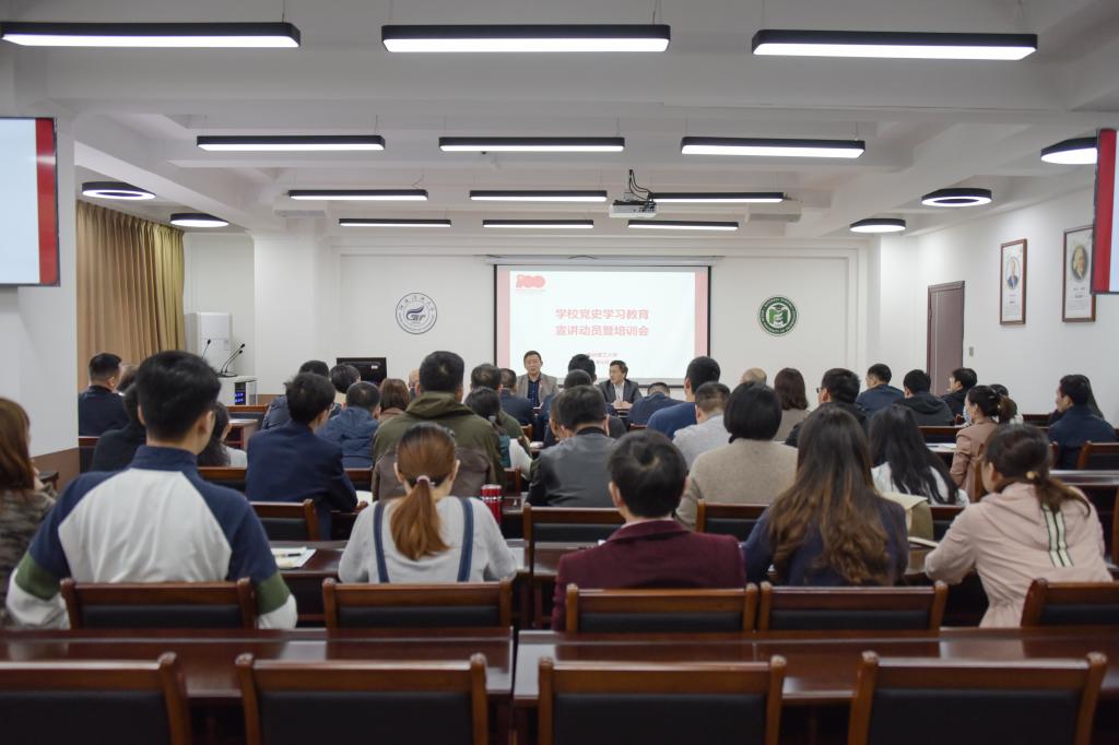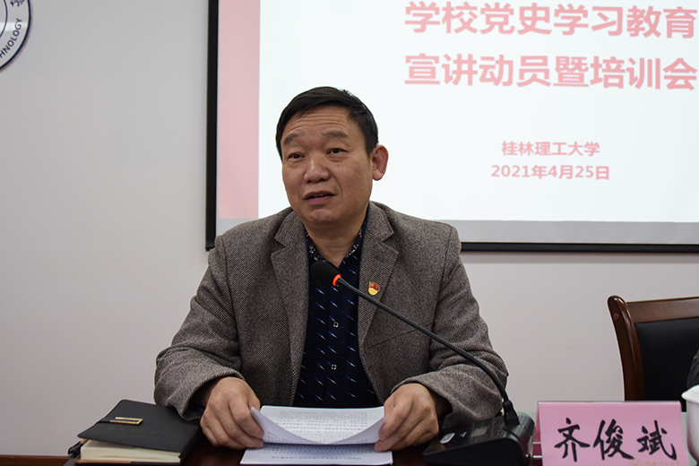 为深入学习贯彻习近平新时代中国特色社会主义思想,认真学习贯彻习近平总书记在党史学习教育动员大会上的重要讲话精神和党中央《关于在全党开展党史学习教育的通知》精神,从党的百年伟大奋斗历程中汲取智慧和力量,扎实推进学校党史学习教育的理论宣讲深入基层、深入人心,4月25日下午,学校在屏风校区7309会议室召开党史学习教育宣讲动员暨培训会。学校党委副书记,党史学习教育领导小组副组长、办公室主任齐俊斌出席会议并讲话。会议由学校党委常委、宣传部部长,党史学习教育领导小组办公室常务副主任叶昊主持,学校党史学习教育领导小组办公室全体成员、宣讲团成员参加会议。
