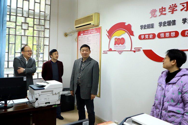 齐俊斌副书记(右二)在屏风校区党史学习教育办公室检查指导工作
