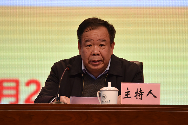 为系统学习和全面贯彻《高等学校课程思政建设指导纲要》,推进学校课程思政教育教学体系建设,提升立德树人成效,3月23日下午,学校在屏风校区体育馆三楼举办课程思政专题辅导报告会,特邀上海中医药大学张智强教授作题为“高校课程思政建设要求及实施路径”的课程思政专题报告。在家校领导解庆林、齐俊斌、吴志强、王玫、周国清、王敦球、韦学敏、邓国彬、曾繁荣出席会议,课程思政教学研究中心全体成员、相关职能部门主要负责人、各二级学院党委书记和院长、全体专任教师以及部分兄弟院校教师代表听取了此次报告。报告会由学校副校长梁福沛教授主持。