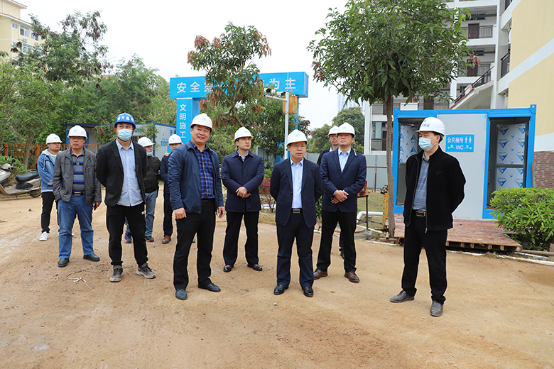 邓国彬副校长(前排中)在空港校区9号学生公寓检查施工进展