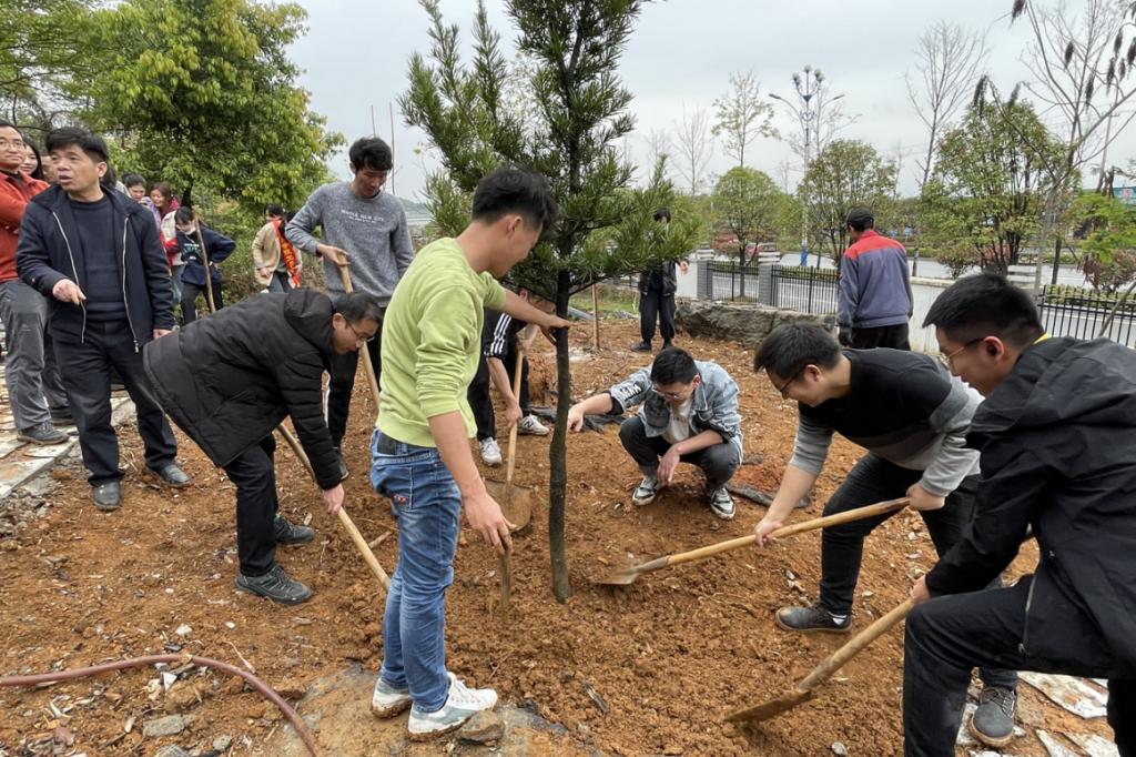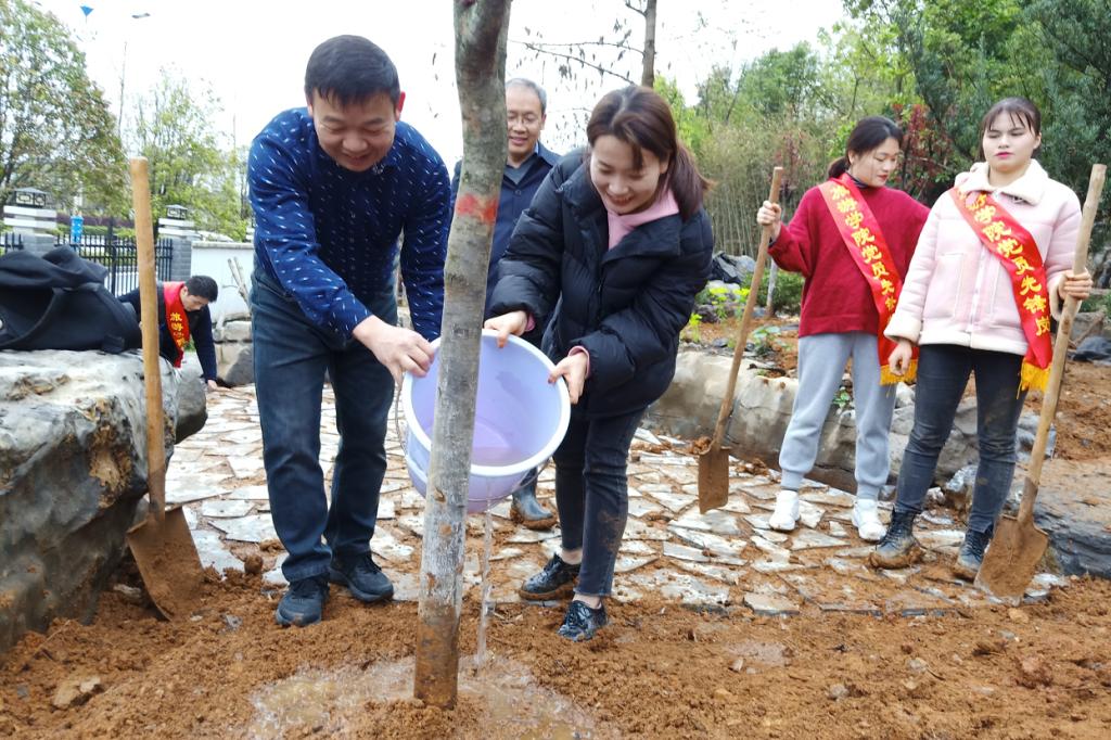 植树现场,参与植树的师生们分工协作,从整地挖坑、栽植树苗,到扶正树苗、封土压实,再到提水浇灌,各道工序有条不紊。在师生们的共同努力下,共种下30棵罗汉松、紫叶李,为建设文明美丽和谐绿色校园再添新绿。