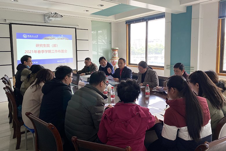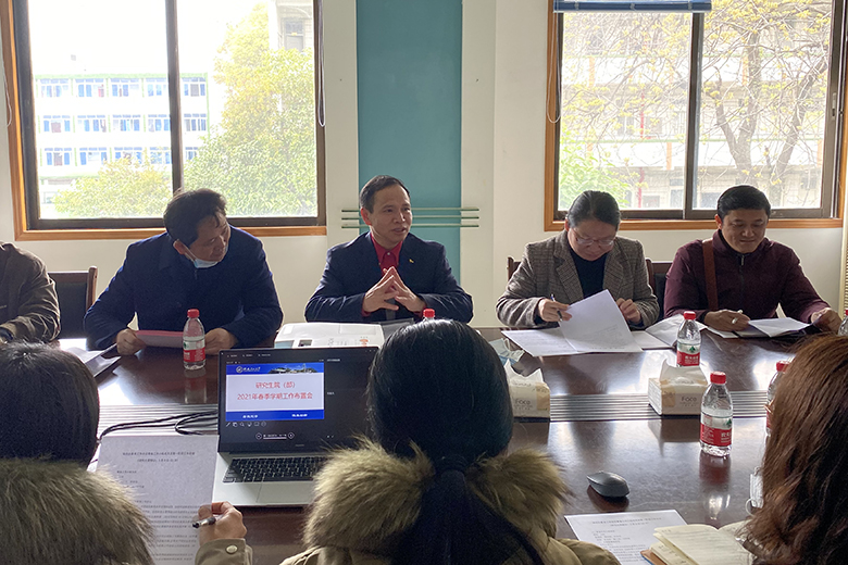 为全面推进2021年春季学期工作,3月2日,beat365研究生院(部)在屏风南校区办公楼305组织召开新学期工作布置会,学校副校长周国清出席会议并讲话,研究生院(部)全体教职工参加会议。