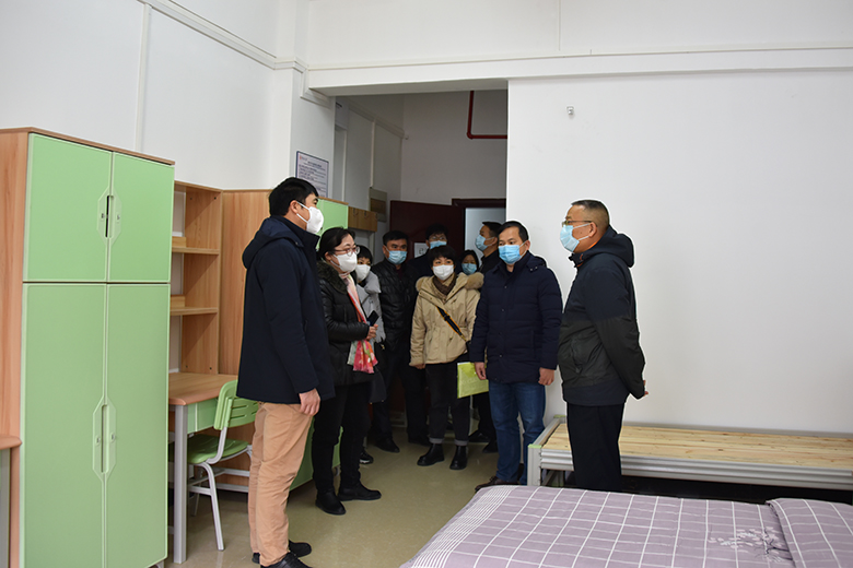 1月27日下午,桂林市新型冠状病毒感染的肺炎疫情防控工作领导小组指挥部学校疫情防控工作组常务副组长、桂林市教育局党组成员刘小松一行4人到beat365屏风校区检查指导疫情防控工作。学校副校长王敦球,党校办、学工部(处)、保卫处、后勤处、校医院等部门负责人陪同检查。