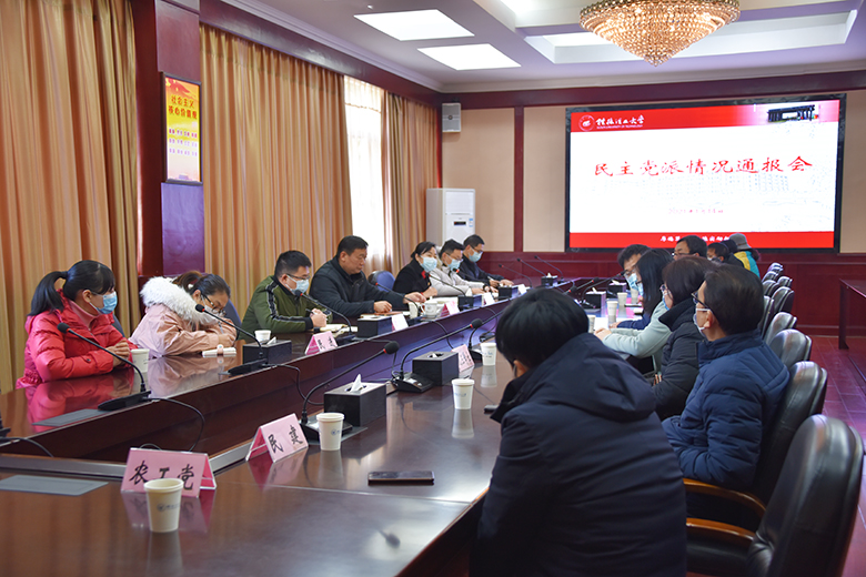 1月14日上午,学校在屏风校区教八楼会议室召开2020年民主党派情况通报会。党委副书记齐俊斌出席会议并讲话,组织部、统战部、教师工作部负责人和各民主党派基层组织负责人及党外人士代表参加会议。