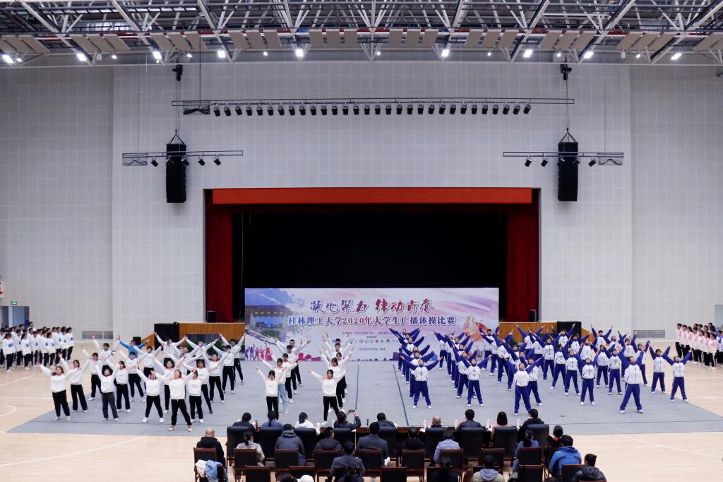 为深入推进学风建设,进一步推动学校群众性体育活动开展,丰富校园文化生活,提高广大学生的身体素质,11月28日下午,学校在雁山校区新体育馆举办2020年“凝心聚力,律动青春”大学生广播体操比赛。学校党委副书记吴志强出席比赛并讲话,学生工作部(处)、校团委、体育教学部负责人以及各学院党委副书记到场参观,来自14个学院的28支班级队伍参加了角逐。