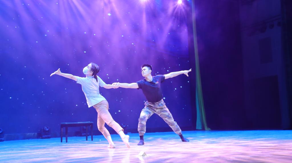 第一篇章“流绪微梦”,流露着同学们的民族自豪感。一曲大唐之舞于流转空灵飘忽间隐隐而来,惊艳全场。紧接着以抗疫为主题的《最美逆行者》讲述了祖国危难时,守护华夏大地的英雄们的故事,他们为疫而战,无私奉献,用生命书写着充满希望的篇章。