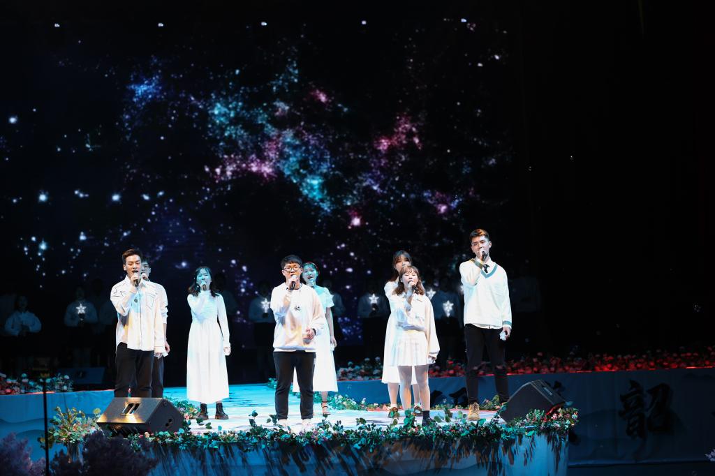 第三篇章“华彩韶光”,暗蕴着人生只有和家国结合在一起才能熠熠生辉的至理。《万里长城永不倒》在舞狮团、武术队配合演出下更显大气磅礴,彰显了不屈不挠的民族气魄。根据黄文秀真实事迹改编的舞台剧《秀美人生》紧贴脱贫攻坚的时代主题,再现了以黄文秀为代表的民族脊梁和扎根于基层的新时代英雄们用自己的生命与信念为脱贫事业做贡献的故事。由兄弟院校广西师范大学带来《隔不住的爱》通过舞蹈的方式讲述疫情期间发生的真实故事,展现了华夏儿女们向死而生的气概和迎难而上的担当。