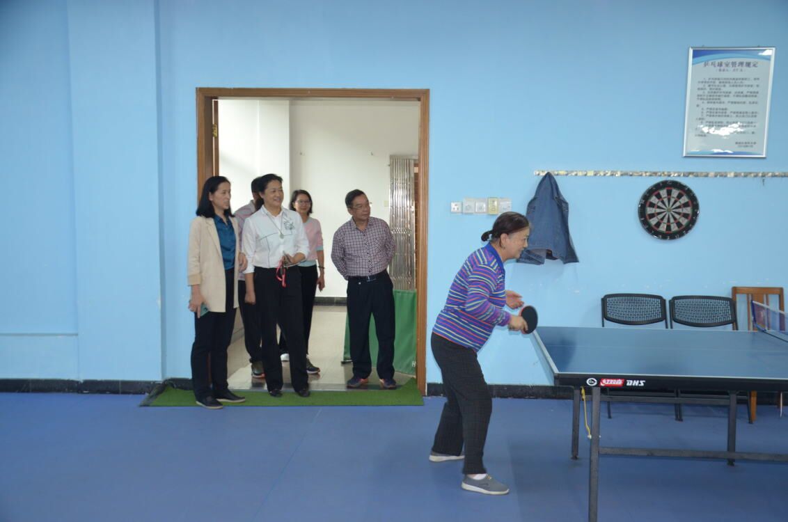 11月18日下午,学校老年活动中心欢歌笑语。学校副校长王玫在离退处相关负责领导的陪同下,看望在这里开展文娱、体育活动的老同志们,对老年活动中心运转情况和离退处为老服务工作情况进行实地调研。