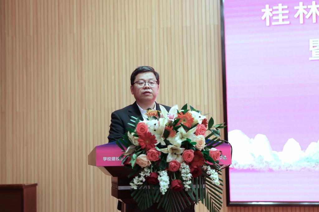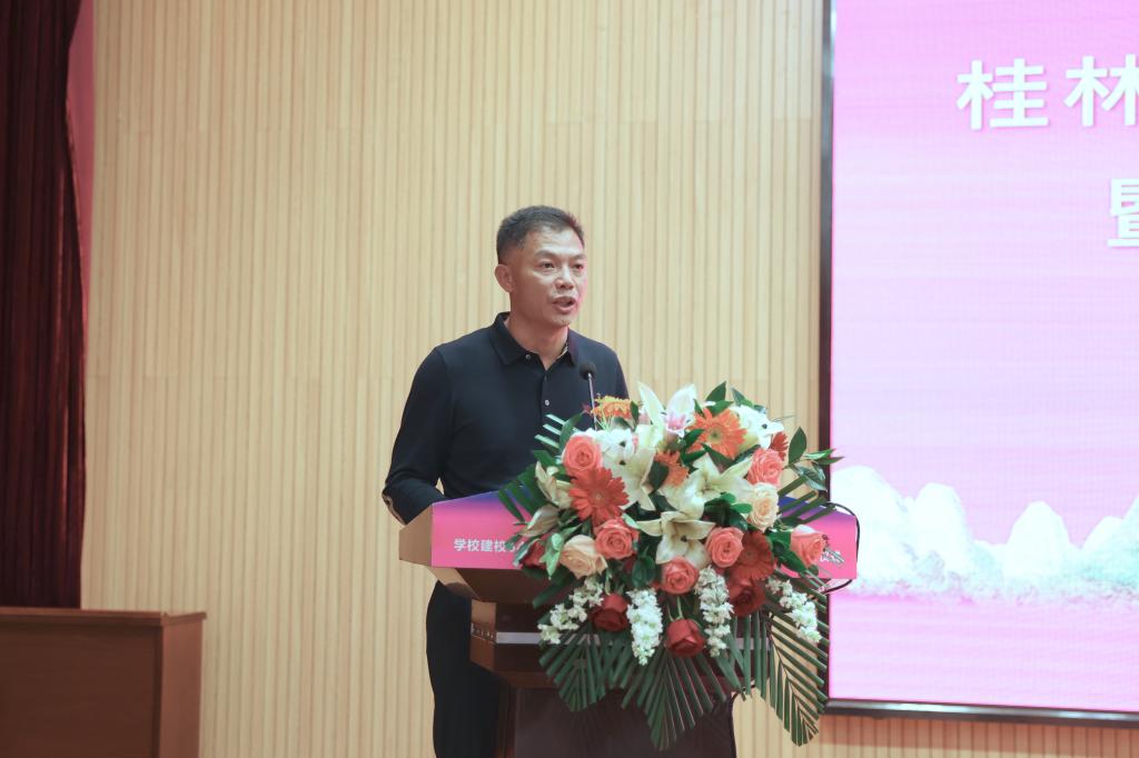 李国忠代表学校全体师生向设立奖学金的校友表示衷心感谢并致以崇高的敬意,向出席颁奖仪式的领导及各位校友表示热烈欢迎。他在讲话中阐述了校友与母校是命运共同体,母校造就校友,校友成就母校,特别是在今年学校抗击新冠肺炎疫情期间,广大校友通过各种方式向母校捐赠防疫物资,关心和支持母校的疫情防控工作,充分展示了桂工校友的情怀与担当。他希望广大同学以优秀校友为榜样,坚定理想,追求卓越,努力把自己培养成社会主义合格建设者和可靠接班人。同时,李国忠寄语广大教职工落实立德树人根本任务,牢记为党育人、为国育才使命,创新教育理念,提升育人能力,不断推动学校事业发展前进。