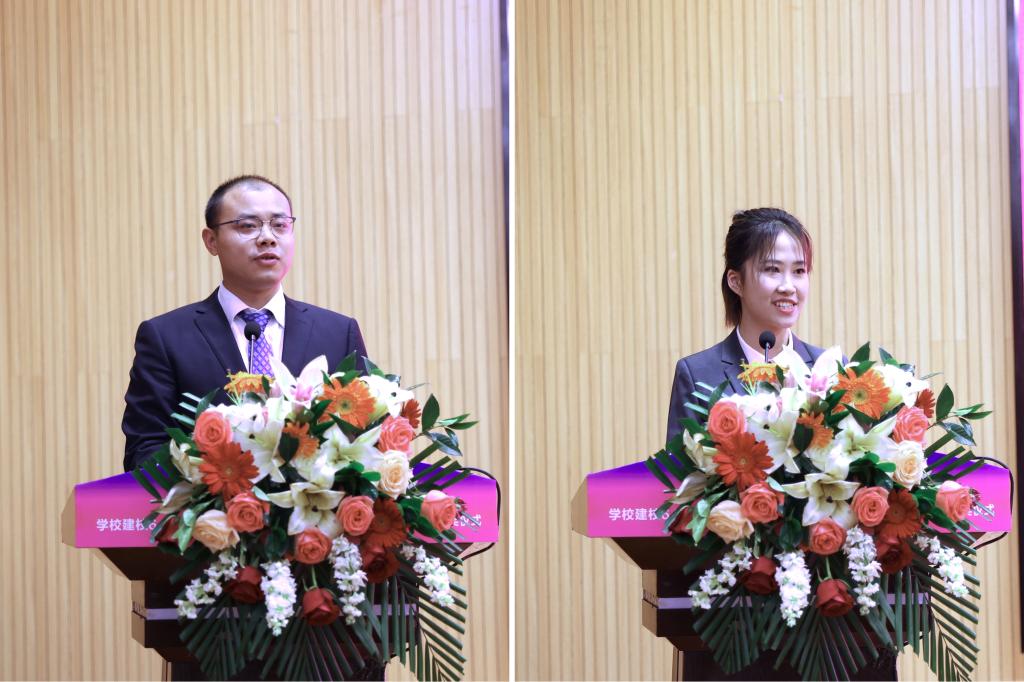 获奖师生代表、环境科学与工程学院辅导员唐源江和地球科学学院资源勘查工程(实验班)17-1班芦思洁分别作了发言,他们代表获奖师生感谢学校的培养,校友的关怀,并表示将心怀感恩,铭记责任,不断进取,为学校争光添彩,为全面建设新时代社会主义现代化强国而不懈奋斗!