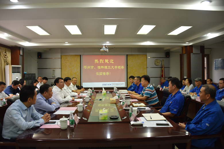 在梧期间,学校调研组先后深入广西梧州中恒集团股份有限公司、中船华南船舶机械有限公司、广西碧清源环保投资有限公司、国光电器集团等企业和粤桂合作特别试验区调研了解企业生产、人才和科技需求、产学研合作、科研成果转化、企业创新发展等情况,并与梧州市委市政府、广西梧州中恒集团股份有限公司、中船华南船舶机械有限公司分别举行座谈会,对接需求、洽谈合作,听取政府和企业对学校建设发展的意见建议。