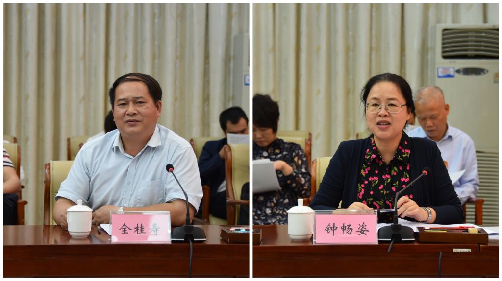 梧州市委书记全桂寿(左)、市长钟畅姿(右)讲话