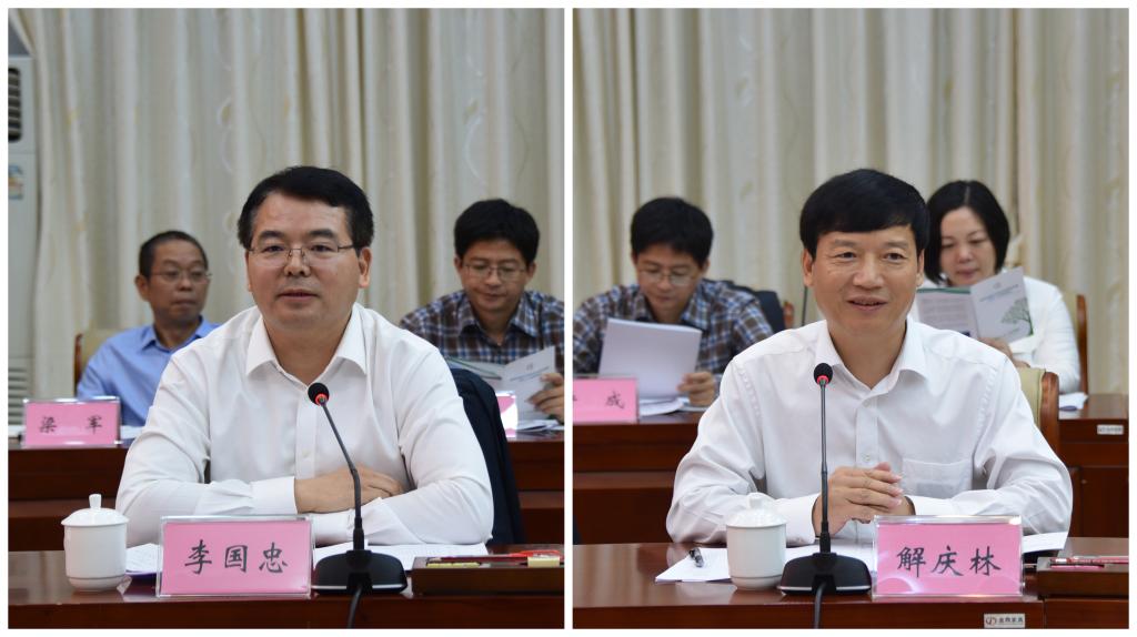 党委书记李国忠(左)、校长解庆林(右)讲话