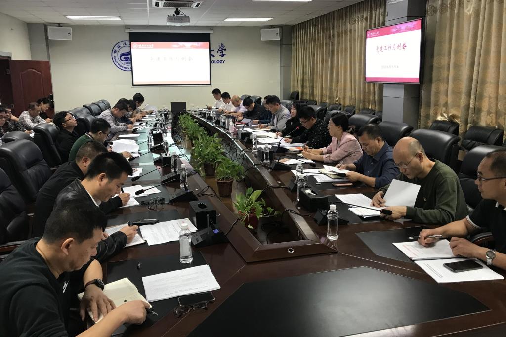 10月14日上午,学校在雁山校区行知楼A201会议室召开党建工作月例会。学校党委副书记齐俊斌主持会议并讲话,党委组织部、宣传部、统战部相关负责人和各二级党组织书记参加会议。