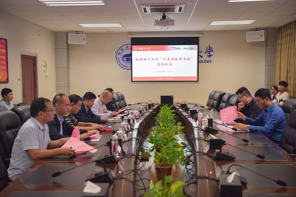 10月13日下午,学校在雁山校区行知楼A201会议室举行beat365官方网站“尺度测绘奖学金”签约捐赠仪式。学校副校长邓国彬,广西尺度测绘地理信息有限公司总经理、07级测绘专业校友王晓亮,副总经理、07级测绘专业校友马国宙等出席签约捐赠仪式。学工部(处)、校团委、测绘地理信息学院、校友办相关负责人以及部分学生代表参加了捐赠签约仪式。