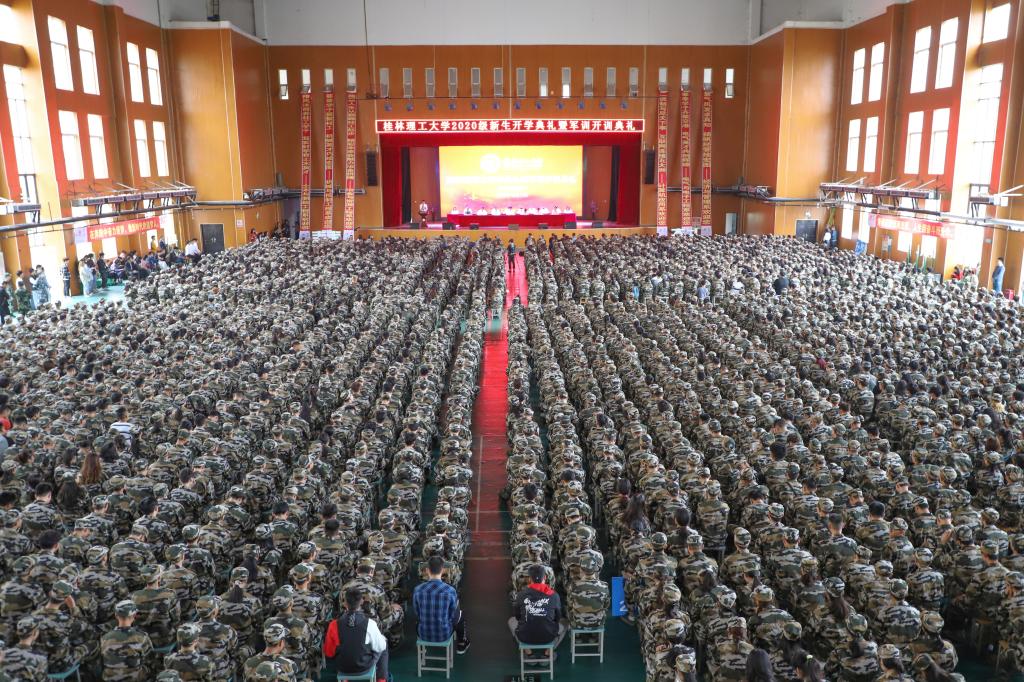 10月11日,南宁分校在空港校区体育馆举行2020级新生开学典礼暨军训开训典礼。学校校长解庆林、党委副书记吴志强、副校长邓国彬,扶绥县委书记罗彪,军训承训部队中国人民武警部队崇左支队副支队长陈坚滨,扶绥县委常委、副县长、宣传部部长黄悦,南宁分校全体领导班子出席典礼。南宁分校相关部门主要负责人,各系(部)主要负责人、学工组长、新生辅导员和班主任,教师代表、老生代表,全体2020级本、专科新生参加典礼。典礼由学校校长助理、南宁分校校长冯兵主持。