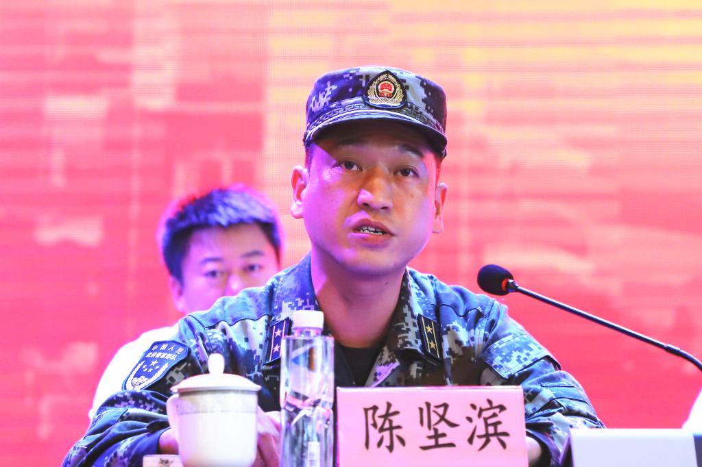 陈坚滨在讲话中指出了高等学校开展军事训练的重要意义,要求全体带训教官发挥人民军队的优良本色,用良好的品质和作风影响参训学生,高效、优质、圆满地完成好此次军训任务,并希望南宁分校2020级新生以饱满的精神、昂扬的斗志参加此次军事训练,切实在思想品质、意志能力、队列知识上有所提高、有所收获。