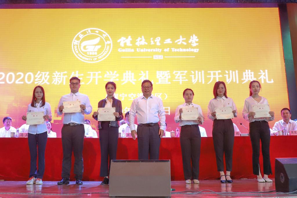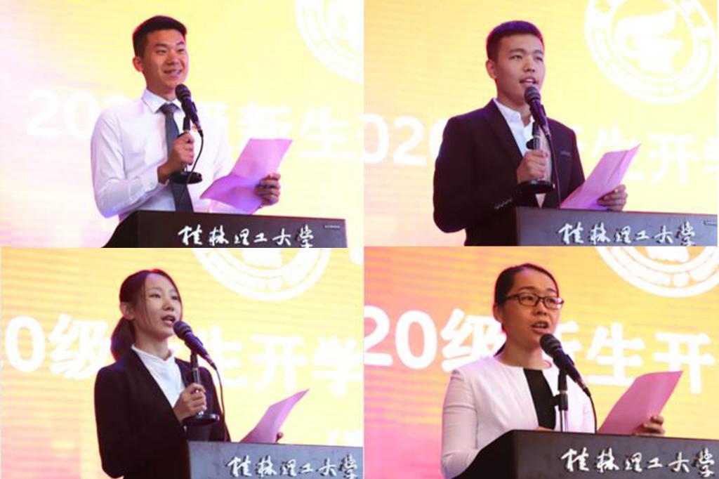 在校生代表、土木与测绘工程系工程管理2017-3班马洪超同学与同学们分享了自己在校的学习感悟,希望学弟学妹们志存高远、勇敢追梦,德才并重、担当作为,勇于开拓、不负韶华;2020级专科新生代表、电气与电子工程系电子信息工程技术2020-2班宋明奇同学回顾了疫情下特殊的高考经历,表示自己对家国情怀有了更加深刻的体会,将在桂工不断汲取知识、锤炼品格,把自己塑造成为适应现代社会需要的、能堪当大任的新时代大学生;2020级本科新生代表、经济与管理系会展经济与管理2020-2班李梦渝同学表达了对大学生活的憧憬,号召全体2020级新同学们自主学习、自律自爱,发掘潜力、博学笃志,广泛社交、丰富自我,牢记使命、继承和发扬桂工精神,为青春和梦想交一份满意答卷。