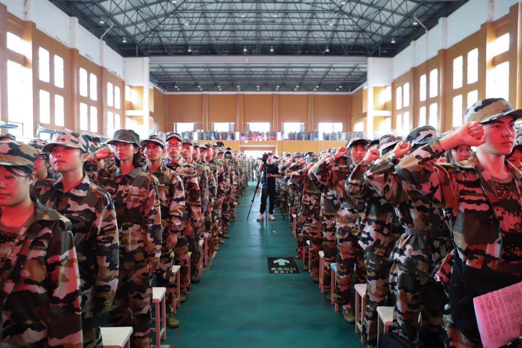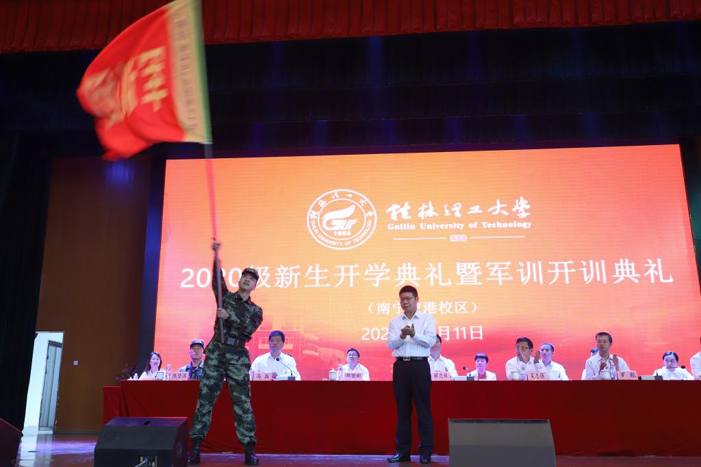 最后,南宁分校2020级新生进行集体宣誓,邓国彬为军训团授旗。