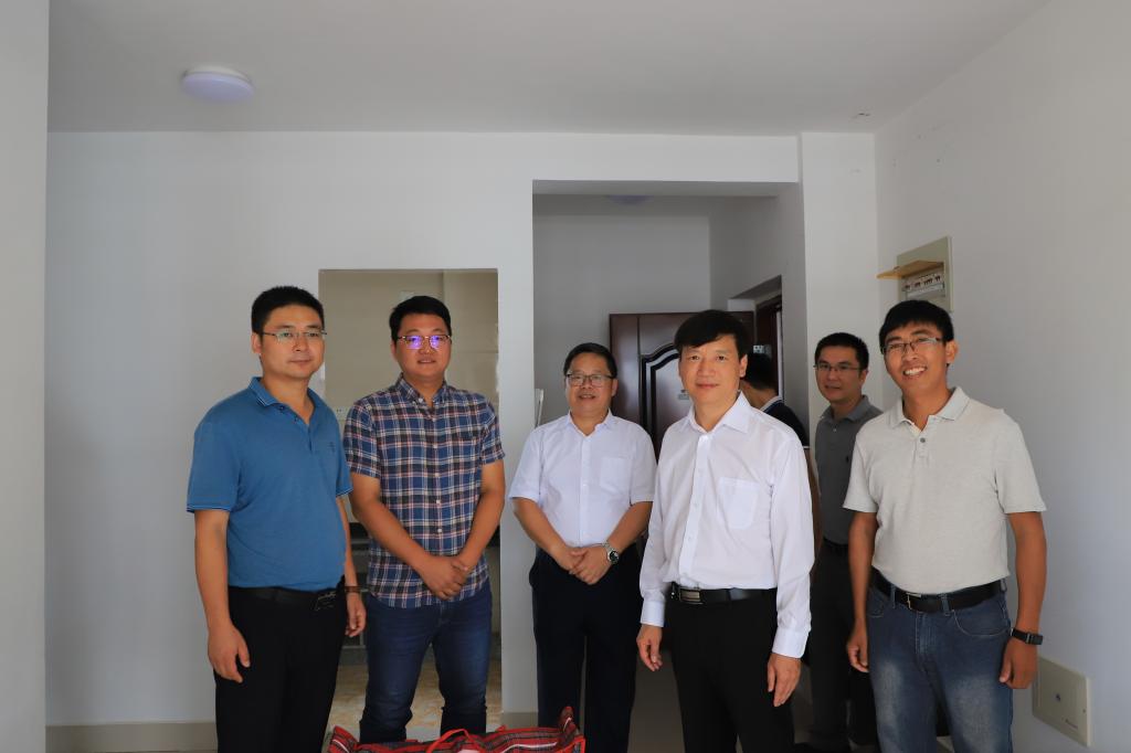 学校党委书记李国忠(中间左二)、副书记吴志强(中间左一)在机控宿舍志愿服务点检查指导工作