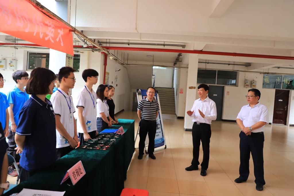 学校副校长周国清(中)在屏风校区检查指导研究生迎新工作