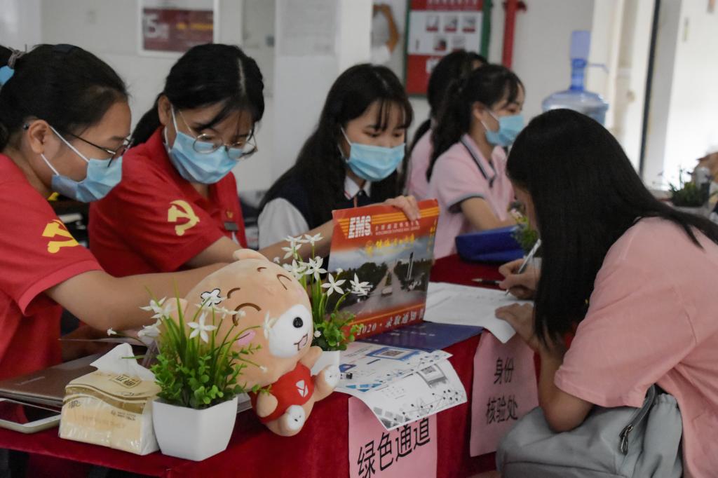 工作人员引导新生办理入学手续