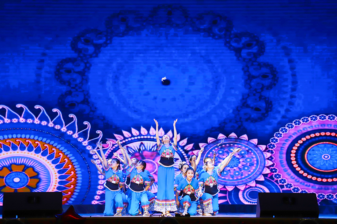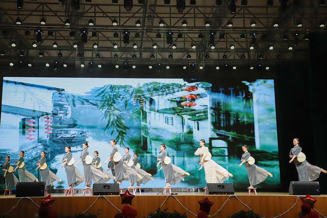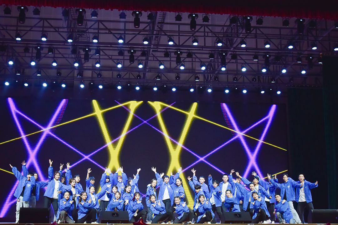 第二篇章——“筑梦桂工”,展现了2020级新生积极投入到新的学习生活,开启人生新篇章的欢快和憧憬。壮族舞蹈《壮水谣》向观众展示了广西独有的民族特色;模特走秀《未来·远行》与街舞《power》体现了桂工学子的朝气蓬勃和青春活力;光影剧《桂工故事》用无声的光影表演,向观众呈现了多彩绚烂的校园生活。