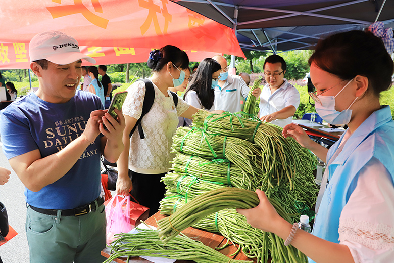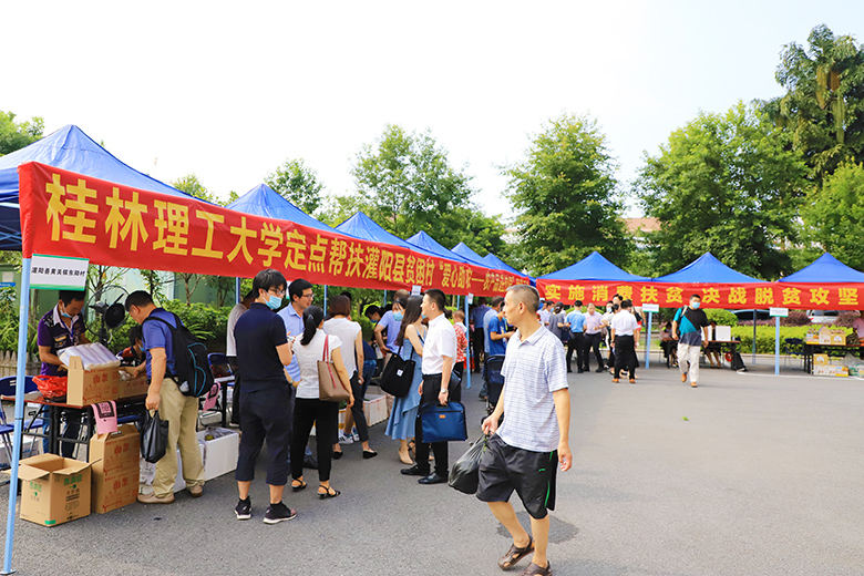 为凝聚打赢脱贫攻坚战的强大合力,推动学校师生员工积极参与消费扶贫,7月1日上午,beat365在雁山校区萃华楼广场组织开展“庆七一,学先锋,助力脱贫攻坚做贡献”主题党日系列活动,定点帮扶灌阳县贫困村“爱心助农——农产品进校园”展销,共同为助力脱贫攻坚做贡献,以实际行动庆祝中国共产党成立99周年。