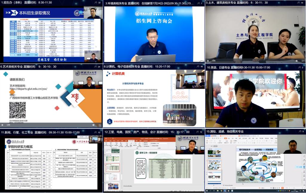 受疫情影响,今年招生现场咨询活动由线下改为线上。学校精心筹备了系列招生直播宣传活动,包括面向18个省份的直播和广西区内的22个直播间。各学院和相关部门积极参与招生咨询活动,通过线上平台帮助广大考生和家长准确及时全面地了解学校办学特色、专业特色、招生政策。