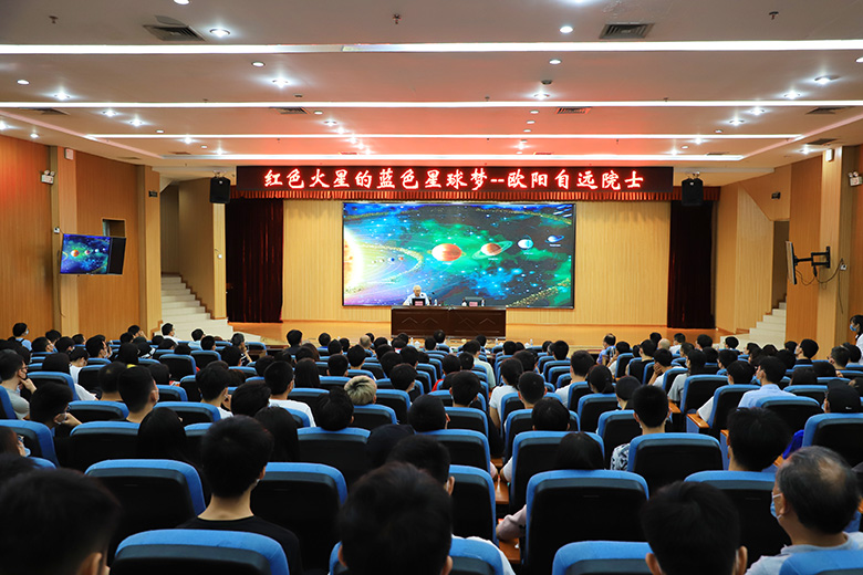 报告会上,欧阳自远院士以“红色火星的蓝色星球梦”为题,从战神-火星、火星概述、火星运河之谜与火星人、跌宕起伏的火星生命探寻、火星的演化、再造一个地球、中国的首次自主火星探测——“天问一号”、向太阳系的星辰大海挺进等八个方面,介绍了火星的历史、对地球和人类产生的深远影响,回顾了人类火星探测的历程与成果,解析了人类迫切希望探索火星的缘由,探讨了中国自主火星探测的发展战略,畅谈了中国深空探测的愿景。