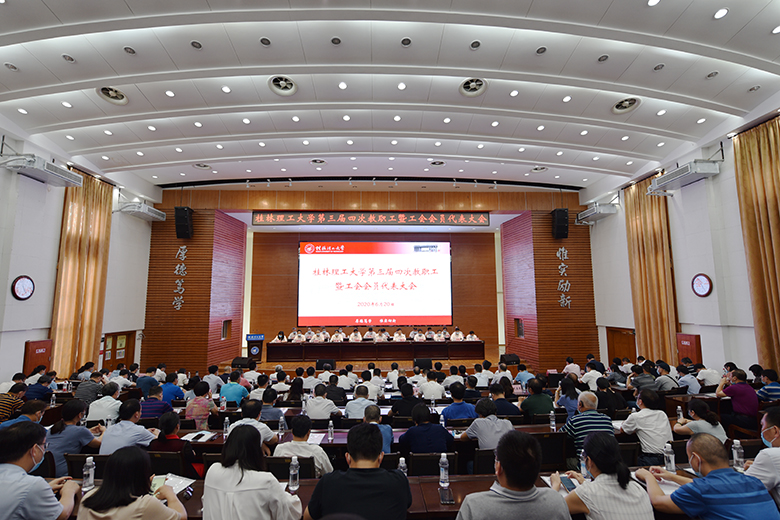 6月20日,beat365三届四次教职工暨工会会员代表大会在屏风校区图书馆报告厅举行。校领导李国忠、解庆林、齐俊斌、吴志强、王玫、梁福沛、王敦球、邓国彬、曾繁荣出席大会。大会共有正式代表、列席代表、特邀代表200余人参加会议,共同为推动学校各项事业健康发展建言献策。