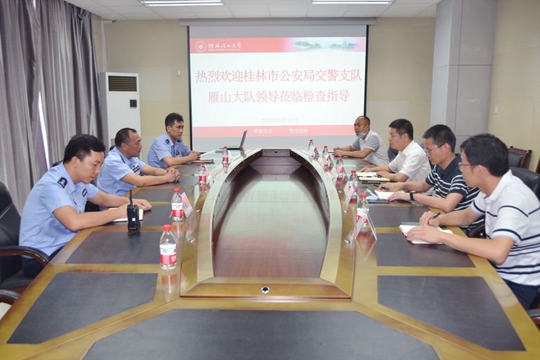 6月18日下午,桂林市公安局交警支队雁山大队大队长蒋济健、教导员林维斌等一行4人来beat365就安全教育基地升级改造交通安全工作进行交流指导。学校副校长邓国彬出席会议并讲话,保卫处负责人在雁山校区行知楼B301会议室与来访客人进行了座谈。
