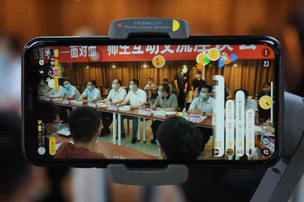 座谈会上,现场的各学院学生代表就返校后的实际问题进行了发言提问,就领取补助金,热水供应,食堂就餐等提出相关问题和建议,随后各职能部门就同学们提出的相关问题进行了现场交流并解答。会议进行至线上互动环节,参与线上互动的学生从返校后的学习情况、生活状况、思想动态等方面进行发言提问,各职部门负责人对学生提出的问题一一解答。