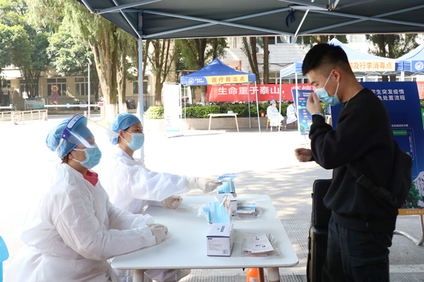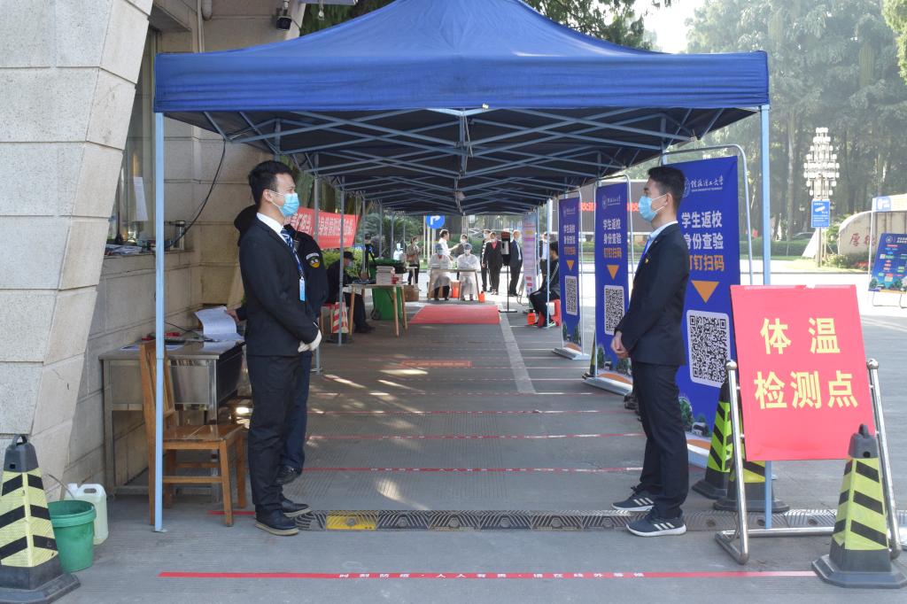 学生返校期间,全体校领导分别赴各校区的学生返校工作报到点检查指导开学工作。详细了解各年级学生返校报到情况,并且深入学校食堂、学生宿舍与返校同学们亲切交谈,了解同学们的假期生活和在线上课等情况,并提醒大家科学防护、理性应对,以最好的状态迎接新学期的到来。学校各部门分工协作、密切配合,学工、保卫、团委、教务、后勤、校医院等部门干部职工走进学生返校工作一线,引导学生通过专属通道完成系列防疫流程环节有序报到,组织学生领取教材,为学生提供有关咨询服务等。同时,学校设立了“党员先锋岗”和“青年志愿服务岗”,向学生发放防疫宣传资料和对行李进行消毒,安排免费接驳车帮助学生运送行李物品,用亲切的笑容和贴心的服务迎接每一位学子的归来;积极发挥警校联动机制优势,设立警校联动执勤点,为返校学生答疑解惑、保驾护航。各二级学院积极开展关心学生、帮助学生、服务学生活动。如,测绘地理信息学院通过组建学生党员防控突击队开展宿舍结对帮扶活动;艺术学院通过组织走访毕业班学生宿舍,详细了解学生的学习生活情况,及时回应学生关切;理学院通过专门召开毕业班返校安全教育会,及时引导学生明确学校的相关要求,积极配合学校做好防疫工作。