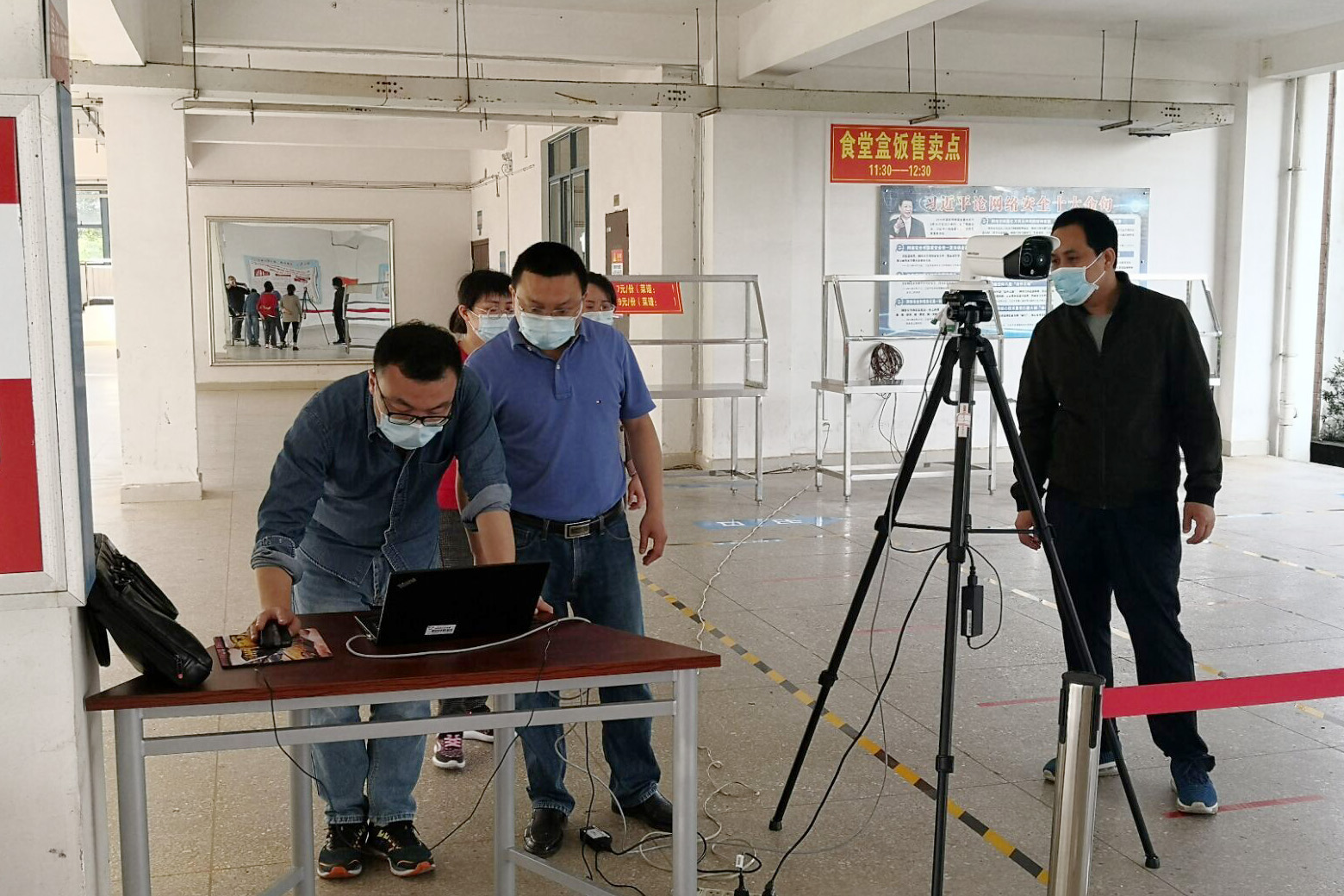 进行复课教学楼体温检测设备测试