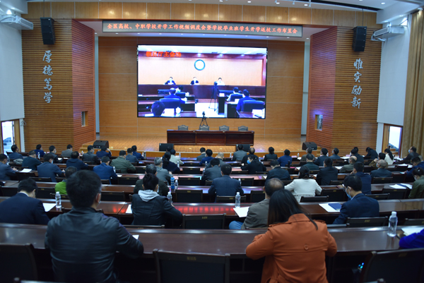 会议要求,各地各学校要切实提高政治站位,牢固树立生命至上、健康第一的理念,统筹谋划好学生返校的事宜,把开学疫情防控的各项工作抓细抓实,确保全区高校及中职学校、技工学校安全有序地开学。