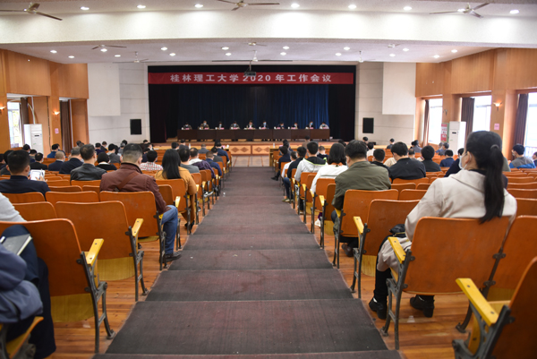 解庆林校长从国家层面、广西层面、学校层面分析了当前学校发展面临的基本形势,就如何把握好机遇做好2020年重点工作进行部署。一是坚持统筹兼顾,切实做好疫情防控与复学准备工作。继续扎实做好疫情防控工作,认真做好学生返校准备工作,用好用足国家的政策,扎扎实实做好2020届毕业生就业工作。二是认真抓好落实,全力完成2020年工作任务。认真谋划做好“十四五”规划,继续深入推进依法治校,积极完善协同育人新格局,大力推进一流本科教育,扎实做好学位与研究生教育,统筹抓好职业教育、国际教育、继续教育等其他各类教育,切实加强一流学科建设,着力加强师资队伍建设,持续加强科研组织管理、提升科技创新和社会服务能力,继续抓好国内合作与服务地方工作,加强条件和服务支撑建设、为学校发展提供全方位保障。