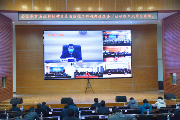 2月19日,自治区党委教育工委、教育厅召开全区教育系统新冠肺炎疫情防控工作视频调度会,总结前一阶段全区教育系统疫情防控工作,分析研判当前形势,对下一阶段的疫情防控工作进行部署。自治区党委教育工委书记、自治区教育厅厅长唐咸仅出席会议并讲话。自治区教育厅副厅长李清先主持会议。beat365在屏风校区图书馆报告厅组织参加视频会议。在家校领导李国忠、解庆林、齐俊斌、吴志强、王玫 、梁福沛 、王敦球 、韦学敏 、邓国彬、曾繁荣出席会议。各单位、部门主要负责人参加会议。