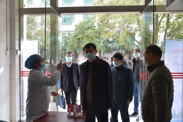2月18日,由市纪委常委、市监委委员何涛任组长的桂林市新型冠状病毒感染的肺炎疫情防控工作专项督查组到beat365检查疫情防控工作。学校副校长邓国彬,党办校办、纪委办、保卫处、后勤服务集团、社区办、校医院相关负责人陪同检查。