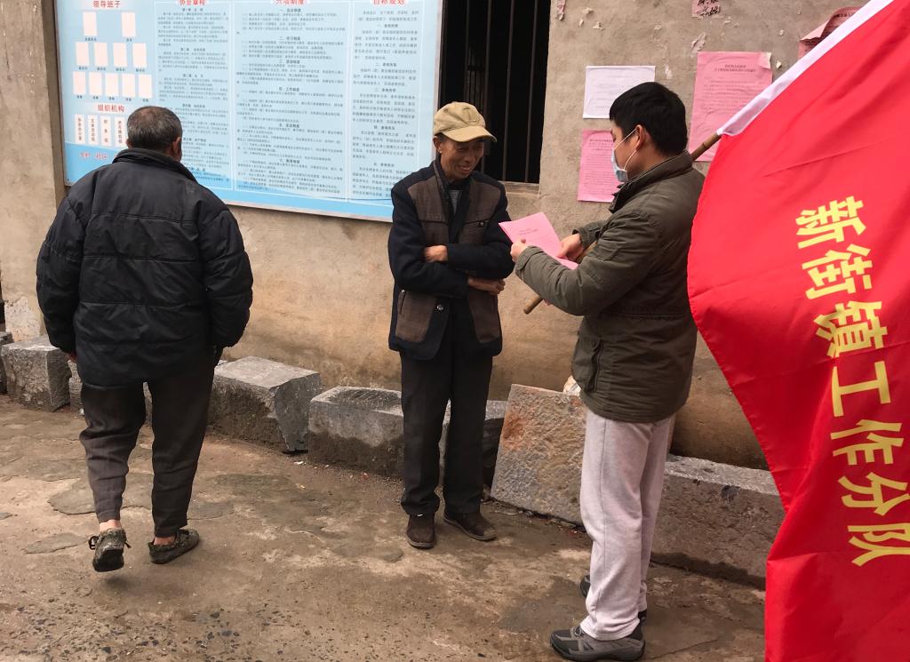 第一书记杨晓发放肺炎疫情防控宣传资料向群众广泛宣传疫情防控知识