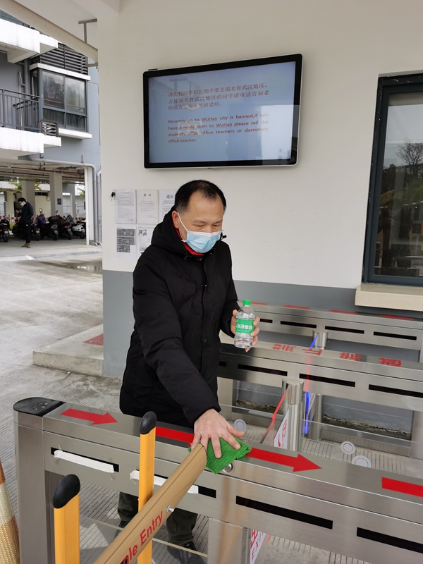 强化内部管控第一道防线。在校医院和保卫处等部门的指导协助下,国际教育学院第一时间对留学生公寓进行全面的人员管控和防疫消杀工作,制定了留学生突发事件处理流程、疫情发生期间失联学生处置程序、提前返校学生处置程序、校外学生管理细则等多项预案,预设临时校内隔离观察区(房),严格执行留学生公寓疫情防控“一问查、二登记、三提醒、四报告、五处置、六消毒”日常工作六要点。