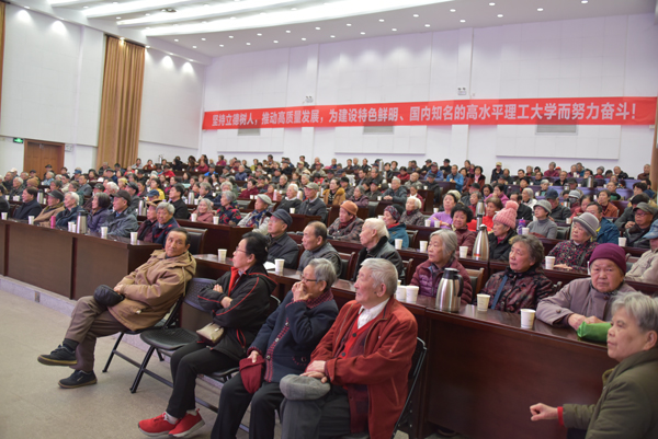 李国忠书记在讲话中代表学校党委、行政,向学校所有离退休老同志致以崇高的敬意和美好的祝愿!祝老同志新年愉快、身体健康、幸福吉祥!他指出,2019年,是学校发展史上具有里程碑意义的一年。这一年,学校认真贯彻落实习近平新时代中国特色社会主义思想和党的十九大、十九届四中全会精神,认真落实管党治党和办学治校主体责任,聚焦内涵建设和高质量发展,抓机遇、聚合力、推改革、促发展,各项工作稳中有进,各项事业继续保持良好的发展势头,在党建和思想政治工作、人才培养、学科建设、科技创新、人才队伍建设、国际交流与合作、民生建设等方面取得新的成绩,学校建设发展迈上了新台阶。这一年,胜利召开了学校第三次党代会,提出了建设“特色鲜明、国内知名的高水平理工大学”的奋斗目标,擘画了学校未来发展的美好蓝图;提出了实现奋斗目标的“三步走”战略。