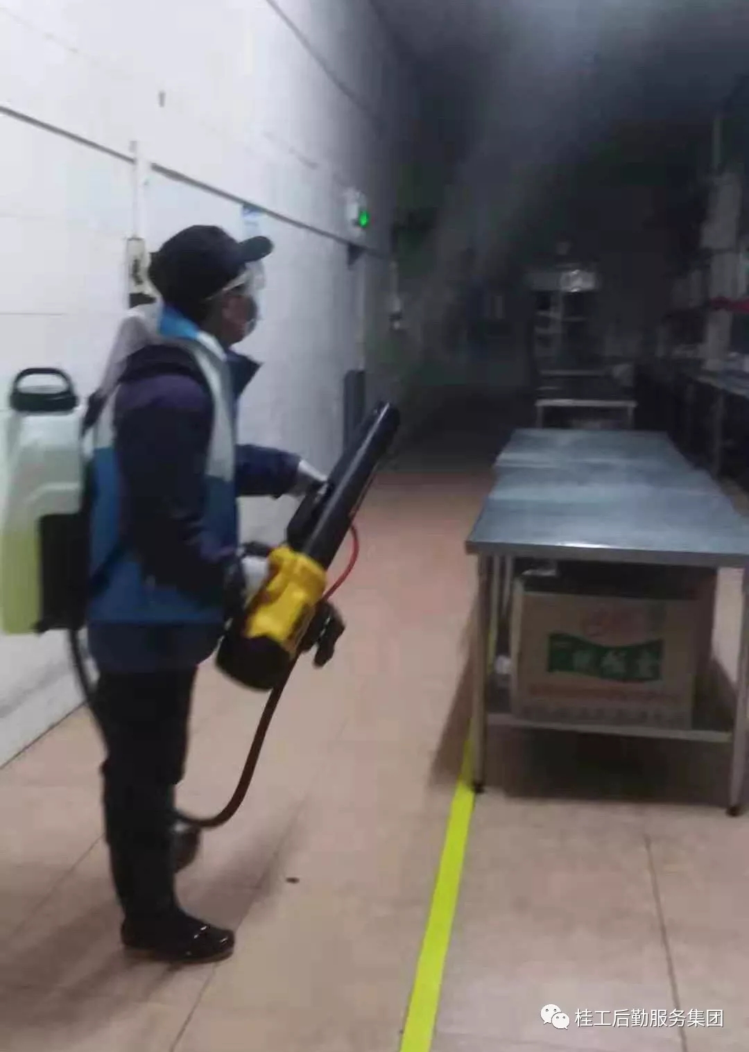 对食堂大厅进行全面消毒